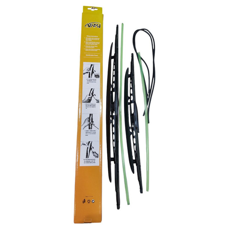 این محصول یکی از با کیفیت ترین تیغه های بازار است. روکش گرافیت به کار رفته در این تیغه به خوبی قطرات آب، رطوبت و آلودگی را از سطح شیشه پاک میکند و مانع از ایجاد رد آب روی شیشه خواهد شد. محصول فوق دارای دو تیغهی 18و 24 اینچی به همراه خار مخضوص است و برای سمند و دنا و زانتیا و هر خورویی که سایز 18و24 اینج هست طراحی شده و قابل استفاده است. استفاده از تیغهی فوق در فصول سرما و پرباران بسیار مفید خواهد بود. این محصول به سفارش برند نامدار و قدیمی (VMN) در کشور چین تولید و واردات مستقیم صورت گرفته و دارای تائیدیه استانداردملی ایران به هنگام واردات میباشد. برند فوق بر روی بدنه جهت شناسایی اصالت کالا حک شده است