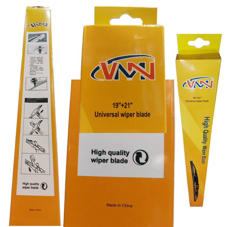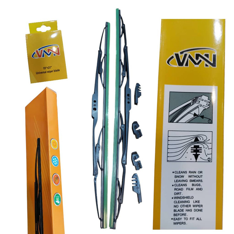 این محصول به سفارش برند نامدار و قدیمی VMN در کشور چین تولید و واردات مستقیم شکل گرفته. و سایز تیغههای برف پاکن که به صورت "19" و "21" اینچ ذکر میشود، معمولاً نشاندهنده طول دو تیغه برف پاکن است که برای شیشه جلو خودرو استفاده میشوند. به طور معمول، سایزهای مختلف برای هر سمت (راننده و شاگرد) در نظر گرفته میشود. سایز 21 اینچ: این سایز معمولاً برای سمت راننده (چپ) در نظر گرفته میشود. در خودروهای مختلف، بهویژه در خودروهای سدان، شاسیبلندها و SUVها که شیشه جلوی بزرگتری دارند، تیغههای 21 اینچی استفاده میشود. این سایز باعث میشود که بخش وسیعتری از شیشه جلو پاک شود. سایز 19 اینچ: این سایز معمولاً برای سمت شاگرد (راست) به کار میرود و در خودروهایی با شیشه جلوی کوچکتر یا مدلهای جمع و جورتر مانند هاچبکها و خودروهای کامپکت استفاده میشود. این تیغه اندازه کوچکتری دارد و بهطور مؤثر شیشه را از قطرات برف یا باران پاک میکند.