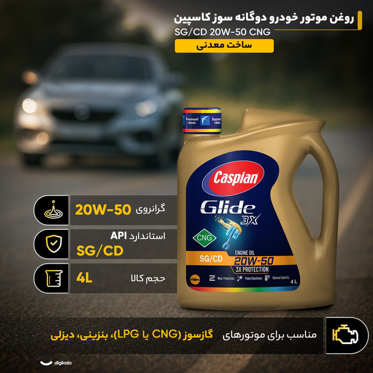 روغن موتور خودرو دوگانه سوز کاسپین مدل SG/CD 20W50 CNG حجم 4 لیتر
